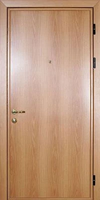 Ламинат - это доска из ДВП толщиной 4-5 мм с четырехслойным покрытием. Визуально он не отличается от натуральной древесины. Рисунок ламинированной доски может быть гладким и имитировать древесный спил или рельефным, имитирующим структуру дерева. Разнообразная цветовая гамма этого материала позволяет изготовить дверь, которая будет отлично смотреться в интерьере как квартиры, так и офиса.