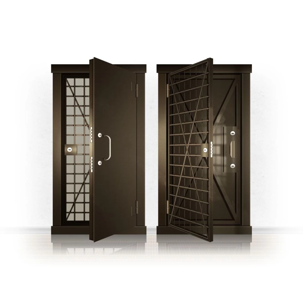 Металлические двери КХО и КХН представляют собой входные блоки, обладающие высоким уровнем взломостойкости и состоят из трех основных элементов: усиленного каркаса, сплошного металлического полотна и решетчатой двери. Дверной блок изготавливается из стального уголка 100*100 мм. Места крепления блока к стене цементируются и закрываются стальными наличниками шириной 40 мм. Крепеж заходит вглубь стены на 80 мм. В конструкции внешней створки монтируются ребра жесткости, для обшивки используется сталь толщиной не менее 3 мм. Внутренняя решетка изготавливается из прутка диаметром 16 мм. Размер ячеек решетки должен составлять не более 15 на 15 см. В точках пересечения прутья надежно приваривают друг к другу. В КХО и КХН необходимо поддерживать определенную температуру и влажность. Для этого внутреннее пространство глухой двери заполняется теплоизоляционным материалом, а по периметру двери приклеивается уплотнитель. Такие двери оборудуются замками с повышенным уровнем взломостойкости. Специализированные двери КХО и КХН в Электрогорске могут быть оснащены сигнализацией, в конструкции могут быть проушины для навесного замка и элементами для опечатывания. Если идет речь о двери в комнату хранения оружия, в створке оборудуется окно для выдачи оружия и спец. средств, которое накрывается стальной дверцей.
