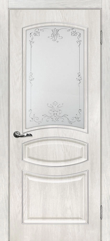 Качественная Межкомнатная дверь Сиена-5 Дуб жемчужный продается по цене 11 167 руб. за полотно. Доступные размеры 550x1900, 600x1900, 600x2000, 700x2000, 800x2000, 900x2000. Так же в наличии большой выбор комплектующих к данной модели, подходящих по цвету и фактуре.