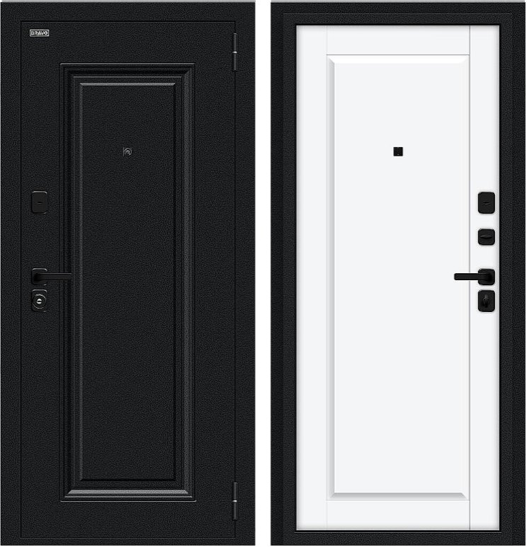 Надежная входная Дверь Браво Сьют МФ/SBlack Букле черное/White Silk премиум класса по цене 31 800 руб. Большая толщина стали защитит от проникновения в ваш дом, квартиру или коттедж. Используется очень качественная фурнитура: замки, цилиндры, ручки, защелки. Покрытие и отделка двери изготовлено под внимательным контролем производителя. Дверь имеет долгий срок службы и гарантию.