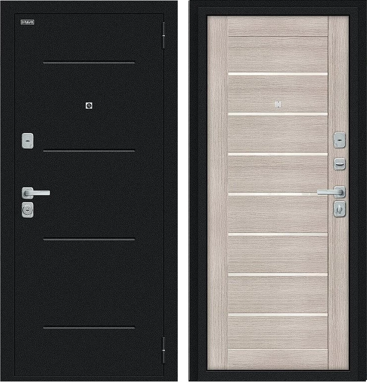 Дверь Браво Техно/BChrome Букле черное/Cappuccino Melinga среднего ценового диапазона. Стоит дверь 28 600 руб. и это отличное соотношение цены и качества. Модель подойдет для установки, например в новостройку. Прослужит долго и будет надежной защитой вашей квартиры или дома.